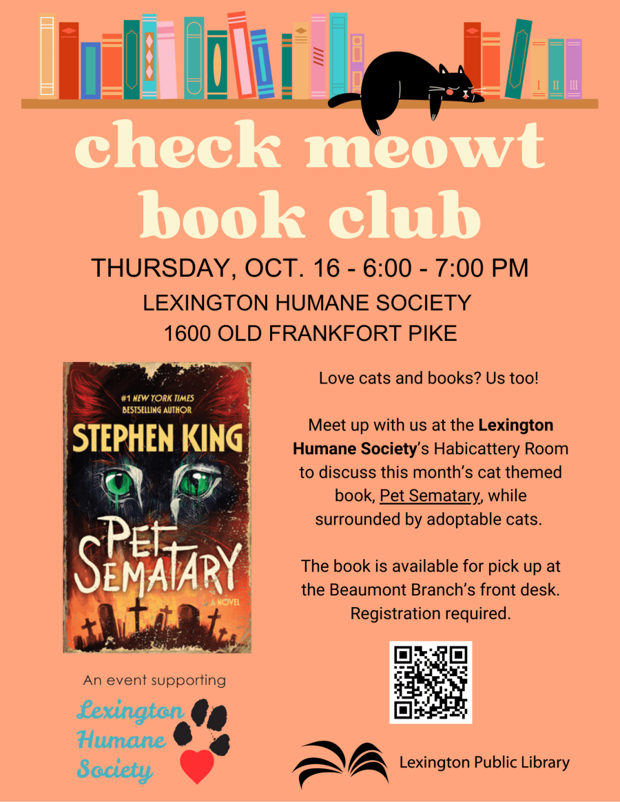 Prepare to peruse literary treasures at the Check Meowt Book Club, presented by Lexington Central Public Library!